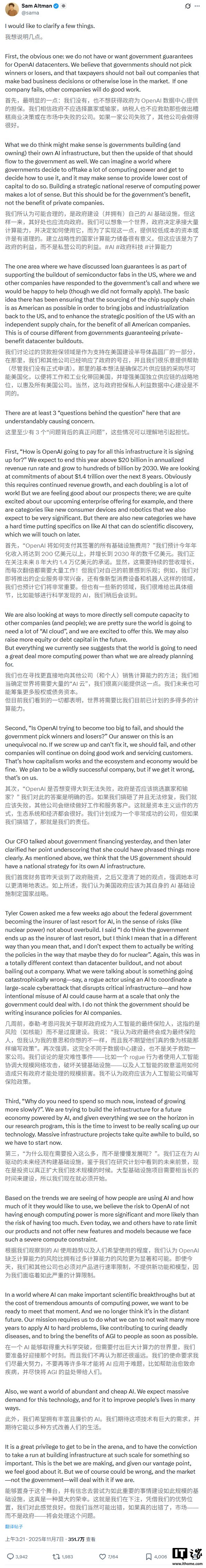 奥尔特曼奥尔特曼周四在一篇帖子中写谈:“OpenAI 的数据中心既莫得、也不需要政府担保。征税东谈主不应为成见有盘算诞妄或在商场竞争中落败的企业提供纾困。”